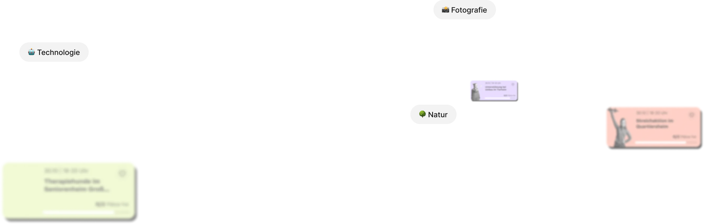 Mit den wichtigsten Informationen auf einer Kachel behältst du den Überblick. Wir zeigen dir, was in deiner Umgebung abgeht und was zu dir passt.
